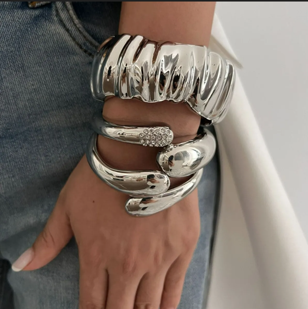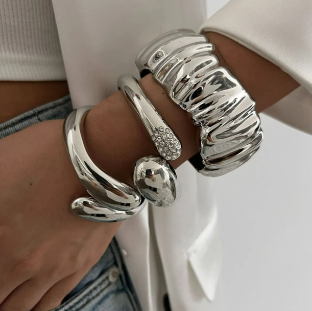 A bold, sculptural cuff with a smooth, molten finish designed to stand out on its own or layered with intention.